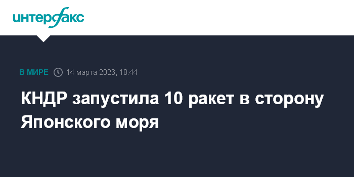 Москва. 14 марта. INTERFAX.RU - КНДР в субботу осуществила пуски в общей сложности десяти баллистических ракет в направлении Японского моря на фоне американо-южнокорейских учений, сообщил Объединенный комитет начальников штабов Южной Кореи.