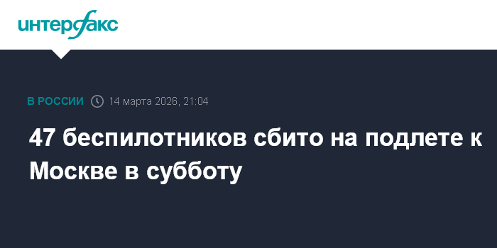 47 беспилотников сбито на подлете к Москве в субботу