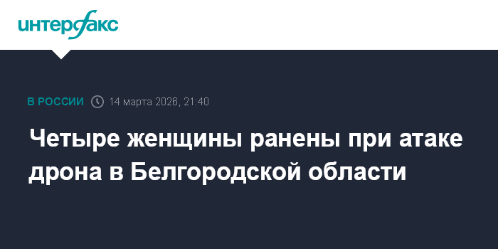 Москва. 14 марта. INTERFAX.RU - Четыре мирные жительницы пострадали при атаке украинского дрона в Белгородской области, сообщил губернатор Вячеслав Гладков в субботу.