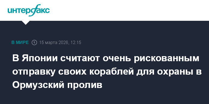 Москва. 15 марта. INTERFAX.RU - Отправить корабли морских Сил самообороны Японии для охраны судоходства в Ормузском проливе - это очень неординарный шаг, требующий немалых предосторожностей, заявил политический советник правящей Либерально-демократической партии страны Такаюки Кобаяси.