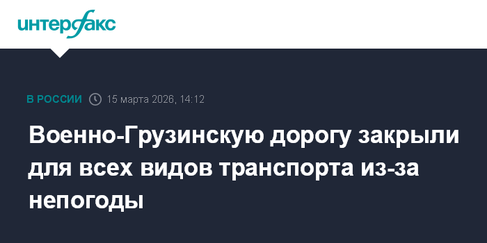 Москва. 15 марта. INTERFAX.RU - Движение всех видов транспорта временно ограничено на участке Военно-Грузинской дороги в Северной Осетии из-за непогоды, сообщает в воскресенье пресс-служба ГУ МЧС по республике.