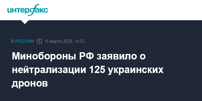 Минобороны РФ заявило о нейтрализации 125 украинских дронов