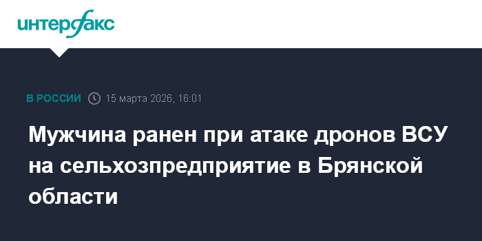Мужчина ранен при атаке дронов ВСУ на сельхозпредприятие в Брянской области