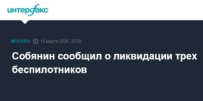Москва. 15 марта. INTERFAX.RU - На подлете к Москве уничтожено еще три беспилотника, их количество за сутки достигло 49, сообщил мэр столицы Сергей Собянин.