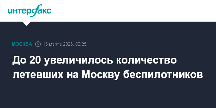 Москва. 16 марта. INTERFAX.RU - Уничтожено еще пять беспилотников, летевших на Москву, всего в понедельник на подлете к столице ликвидировано 20 БПЛА, сообщил московский мэр Сергей Собянин.