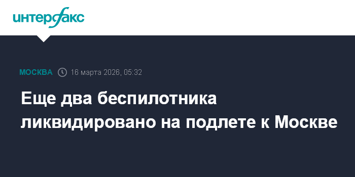 Москва. 16 марта. INTERFAX.RU - Мэр Москвы Сергей Собянин сообщил об уничтожении еще двух беспилотников, летевших на Москву.