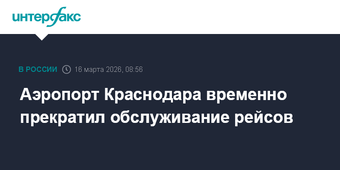 Москва. 16 марта. INTERFAX.RU - Работа аэропорта Краснодара временно ограничена, сообщает Росавиация в своем телеграм-канале.