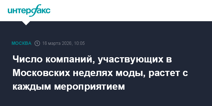 По ее словам, количество компаний, участвующих в неделе моды, становится все больше и больше. "Я не могу не отметить, что очень много новых имён, новых брендов (на этой неделе моды). Есть компании, которые буквально год назад создали свой бизнес, свой бренд, пошили коллекцию. И уже сегодня они прошли строгий отбор, и они представлены здесь. Это действительно замечательный показатель, который лучше всего иллюстрирует, что индустрия растёт", - отметила глава департамента.