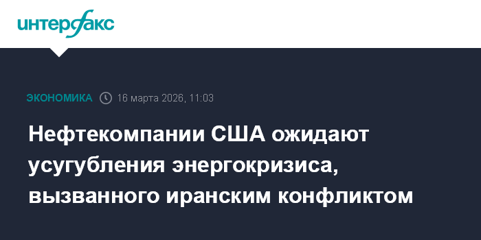 Нефтекомпании США ожидают усугубления энергокризиса, вызванного иранским конфликтом