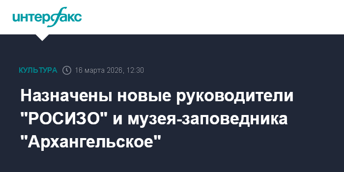 "Директором департамента музеев и поддержки циркового искусства Министерства культуры РФ назначен Иван Лыкошин. С 2025 года руководил музейно-выставочным центром "РОСИЗО". (...) Пост директора музейно-выставочного центра "РОСИЗО" займет Георгий Москвичев. Уверена, существующие проекты продолжат развиваться и будут реализованы новые", - написала Любимова в своем канале в Мах.