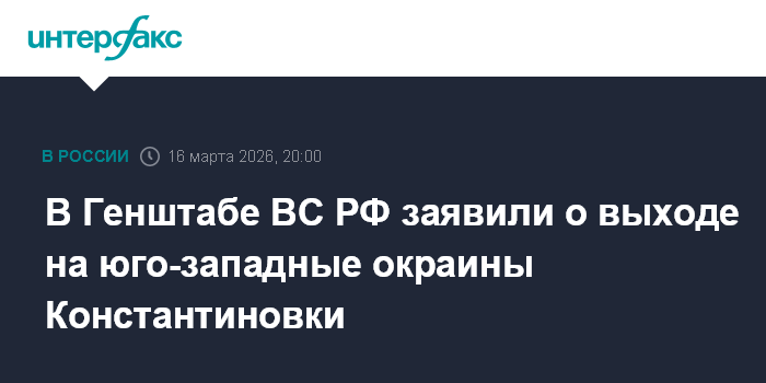 В Генштабе ВС РФ заявили о выходе на юго-западные окраины Константиновки