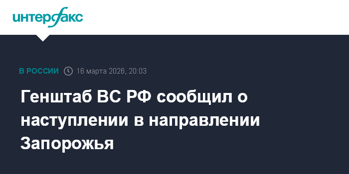 Генштаб ВС РФ сообщил о наступлении в направлении Запорожья