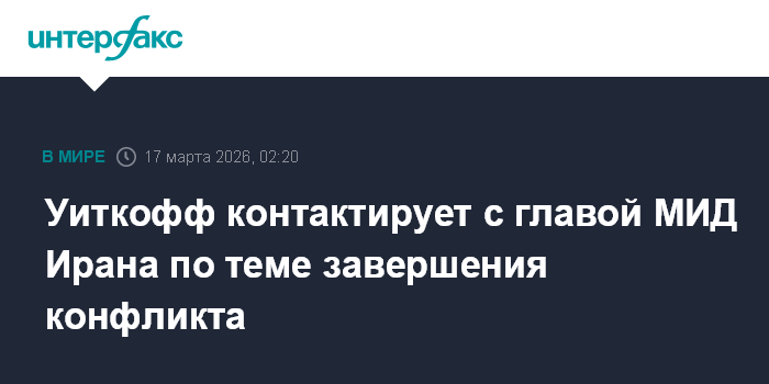 Уиткофф контактирует с главой МИД Ирана по теме завершения конфликта