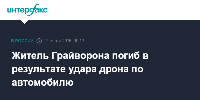 Москва. 17 марта. INTERFAX.RU - В Грайвороне FPV-дрон атаковал автомобиль, погиб мужчина, сообщил губернатор Белгородской области Вячеслав Гладков.