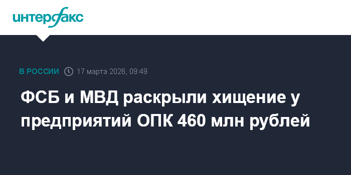 ФСБ и МВД раскрыли хищение у предприятий ОПК 460 млн рублей