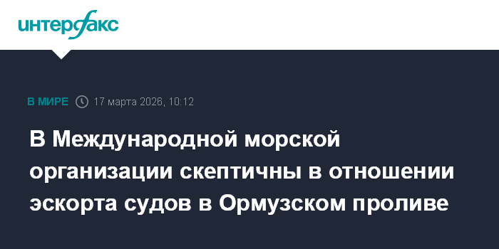 Москва. 17 марта. INTERFAX.RU - Военное сопровождение в Ормузском проливе не сможет полностью гарантировать безопасность судов, сказал Financial Times глава Международной морской организации (ММО) Арсенио Домингес.