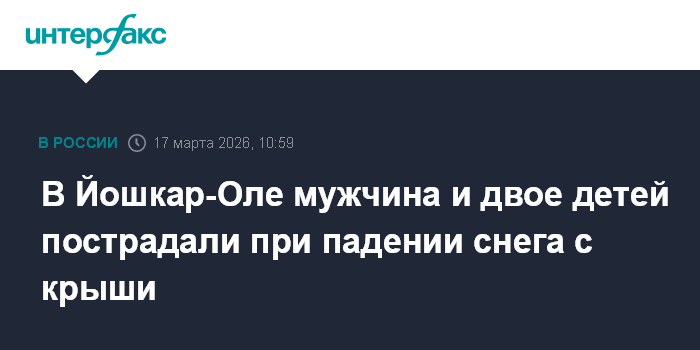 Москва. 17 марта. INTERFAX.RU - В Йошкар-Оле один взрослый и двое детей пострадали в результате падения снега с крыши дома, сообщила прокуратура Марий Эл.