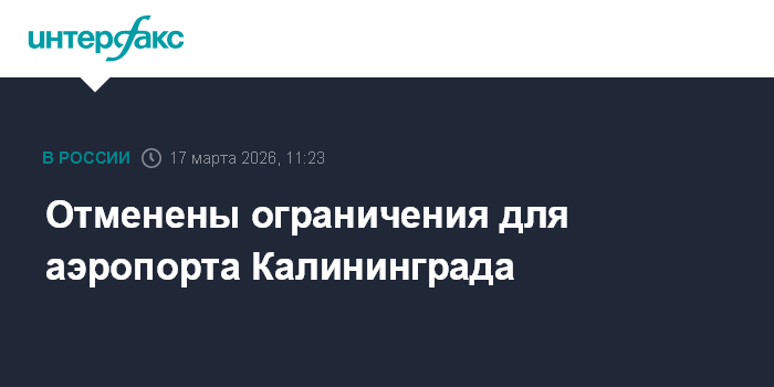 Москва. 17 марта. INTERFAX.RU - Для аэропорта Калининграда отменили временные ограничения полетов, сообщила Росавиация.