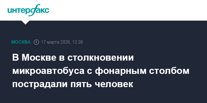Москва. 17 марта. INTERFAX.RU - В Москве у дома 39 по Ленинградскому проспекту микроавтобус столкнулся с фонарным столбом, пострадали пять человек, сообщили в столичном управлении Госавтоинспекции.