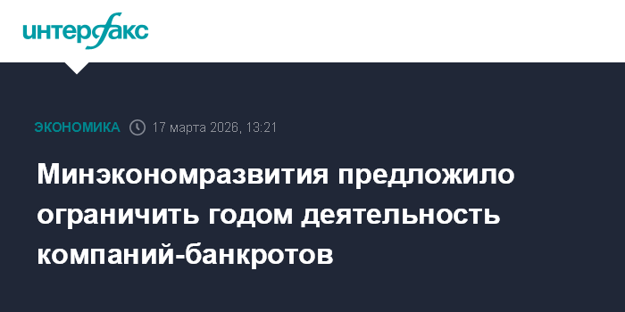 Москва. 17 марта. INTERFAX.RU - Минэкономразвития предлагает ограничить продолжительность деятельности компаний-банкротов в конкурсном производстве одним годом и установить условия-исключения для ее продления, сообщил источник "Интерфакса", знакомый с инициативой министерства.