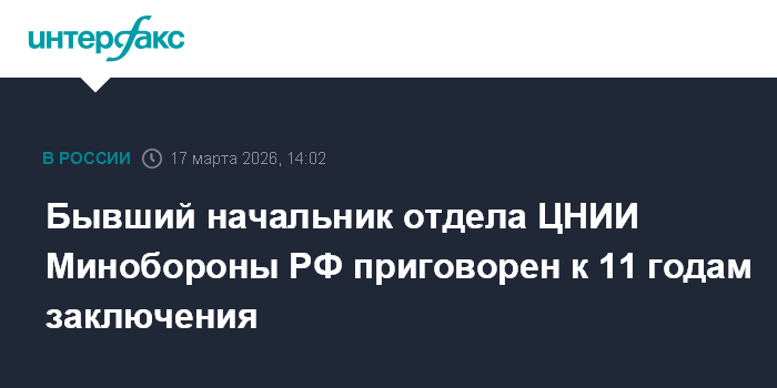 Бывший начальник отдела ЦНИИ Минобороны РФ приговорен к 11 годам заключения
