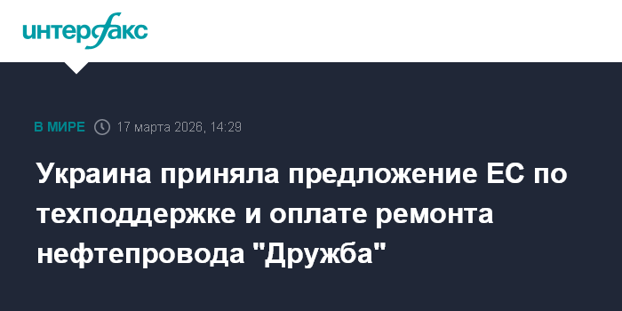 Украина приняла предложение ЕС по техподдержке и оплате ремонта нефтепровода "Дружба"