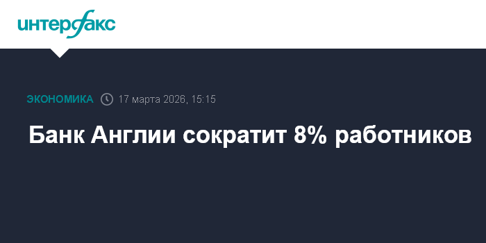 Москва. 17 марта. INTERFAX.RU - Банк Англии в ближайшие месяцы уволит 446 работников, или около 8% штата, в рамках мер по оптимизации структуры и сокращению расходов, передает Bloomberg со ссылкой на информированные источники.