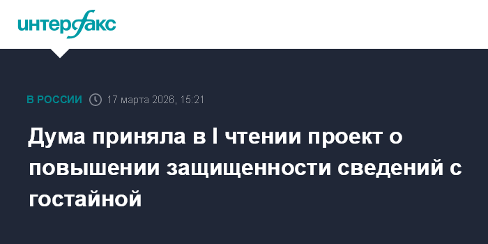 Москва. 17 марта. INTERFAX.RU - Госдума на заседании во вторник приняла в первом чтении законопроект о повышении защищенности сведений, составляющих государственную тайну.