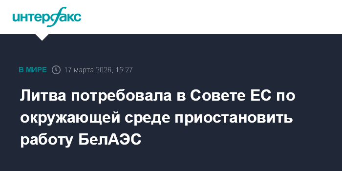 Москва. 17 марта. INTERFAX.RU - Вильнюс требует у Минска приостановить работу Белорусской АЭС и работы по ее расширению, заявил министр окружающей среды Литвы Каститис Журомскас на заседании Совета ЕС по окружающей среде в Брюсселе во вторник.