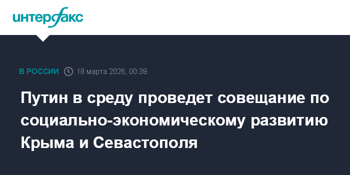 Путин в среду проведет совещание по социально-экономическому развитию Крыма и Севастополя