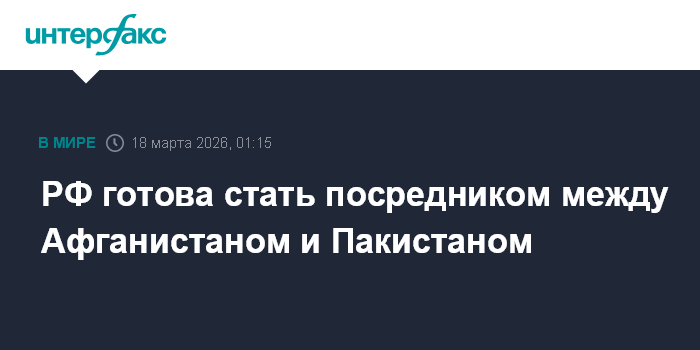 РФ готова стать посредником между Афганистаном и Пакистаном