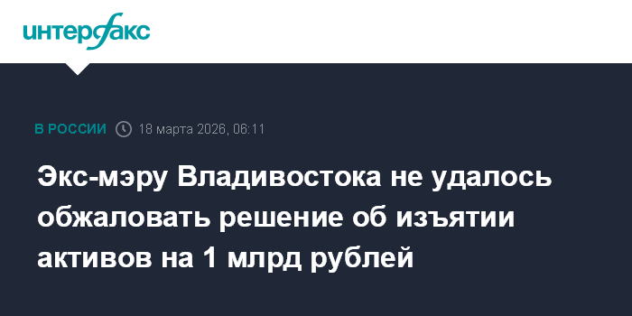 Экс-мэру Владивостока не удалось обжаловать решение об изъятии активов на 1 млрд рублей