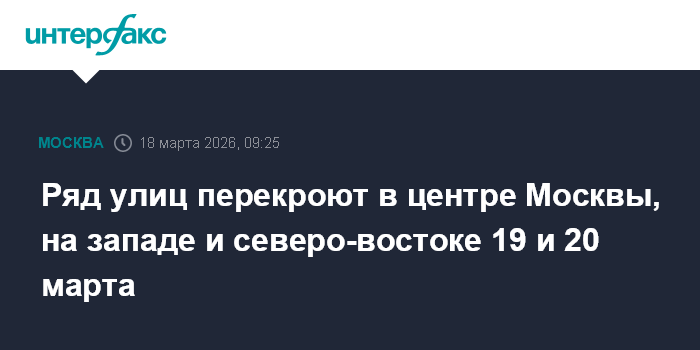 Ряд улиц перекроют в центре Москвы, на западе и северо-востоке 19 и 20 марта