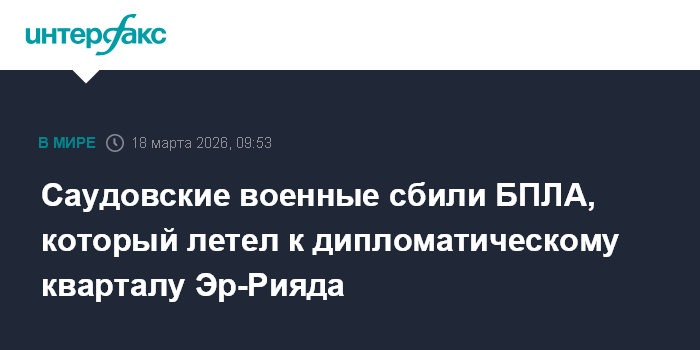 Москва. 18 марта. INTERFAX.RU - Саудовские средства ПВО сбили беспилотник, который приближался к дипломатическому кварталу Эр-Рияда, сообщает "Аль-Джазира" со ссылкой на заявление саудовского Минобороны.