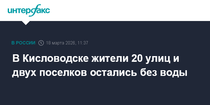 Москва. 18 марта. INTERFAX.RU - В Кисловодске устраняют утечки на нескольких участках водопроводной сети, часть жителей города осталась без воды, сообщает пресс-служба администрации города-курорта.