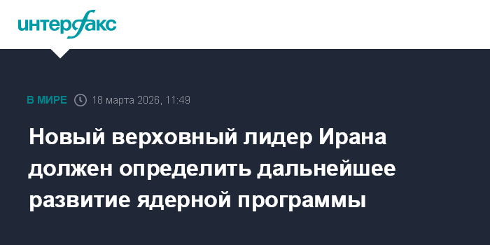 Москва. 18 марта. INTERFAX.RU - Будущее иранской ядерной программы определит новый верховный лидер Ирана аятолла Моджтаба Хаменеи, заявил глава иранского МИД Аббас Аракчи.