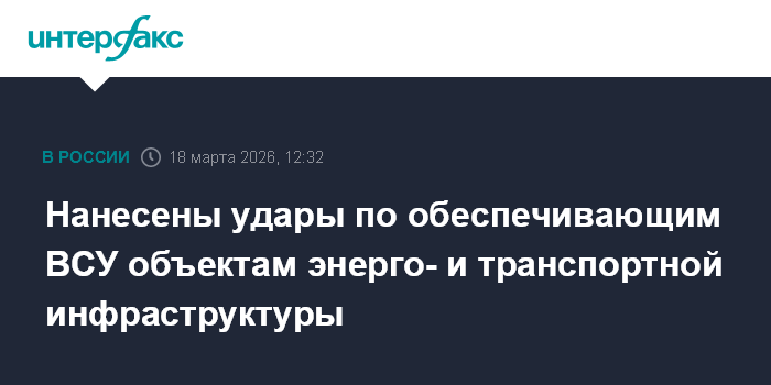 Нанесены удары по обеспечивающим ВСУ объектам энерго- и транспортной инфраструктуры