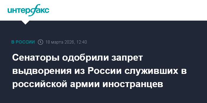 Сенаторы одобрили запрет выдворения из России служивших в российской армии иностранцев