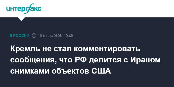Кремль не стал комментировать сообщения, что РФ делится с Ираном снимками объектов США
