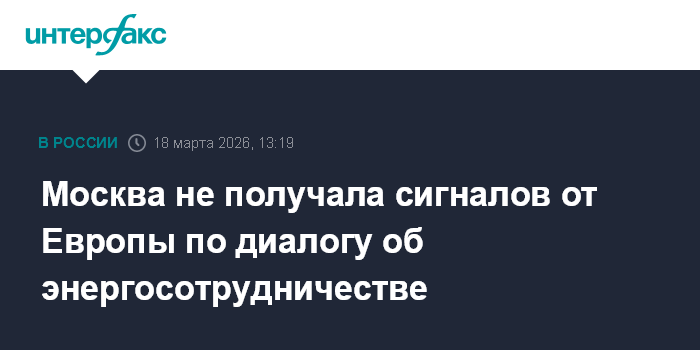 Москва. 18 марта. INTERFAX.RU - РФ не получала никаких сигналов от Европы о диалоге по энергосотрудничеству, но это никогда не поздно сделать, президент Владимир Путин открыт к конструктивному диалогу и по острым вопросам, заявил его пресс-секретарь Дмитрий Песков.