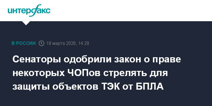 Сенаторы одобрили закон о праве некоторых ЧОПов стрелять для защиты объектов ТЭК от БПЛА