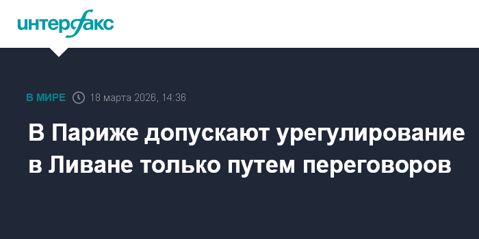 Москва. 18 марта. INTERFAX.RU - Путь к урегулированию военного конфликта Израиля и "Хезболлы" в Ливане лежит только через переговоры, заявил Franceinfo сппосланник французского президента по Ливану, бывший глава МИД Франции Жан-Ив Ле Дриан.