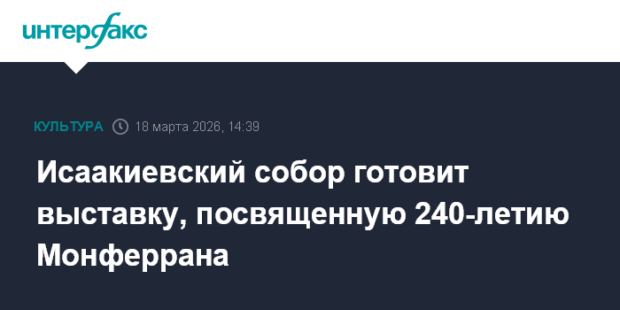 Москва. 18 марта. INTERFAX.RU - Музей "Исаакиевский собор" проведет в 2026 году серию мероприятий, посвященных 240-летию архитектора Огюста Монферрана, сообщил на пресс-конференции заместитель директора по экскурсионно-методической работе учреждения Александр Квятковский.