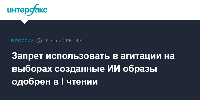 Запрет использовать в агитации на выборах созданные ИИ образы одобрен в I чтении