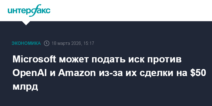 Москва. 18 марта. INTERFAX.RU - Microsoft Corp. рассматривает возможность подачи судебного иска против Amazon.com Inc. и OpenAI из-за их сделки на $50 млрд, пишет The Financial Times со ссылкой на информированные источники.