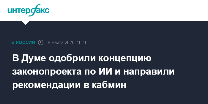 "Участники межфракционной рабочей группы Госдумы одобрили концепцию законопроекта о регулировании работы искусственного интеллекта в РФ, а также рекомендовали правительству учесть его положения при формировании итоговой редакции проекта закона до его внесения в Государственную думу", - сказал "Интерфаксу" Бабаков.