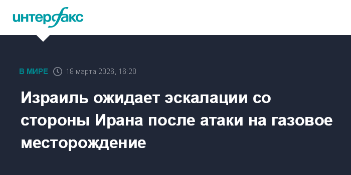 Израиль ожидает эскалации со стороны Ирана после атаки на газовое месторождение