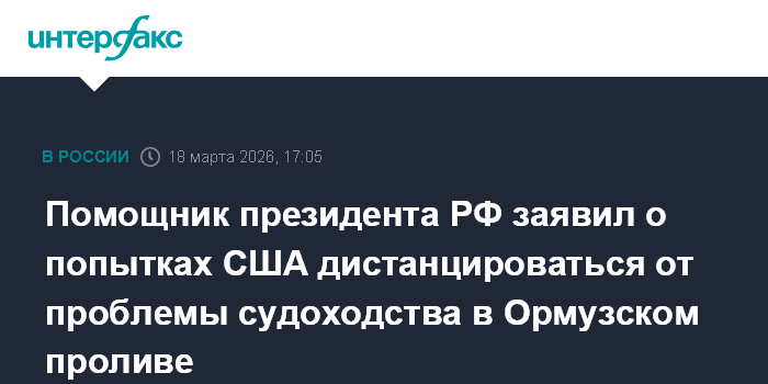 Помощник президента РФ заявил о попытках США дистанцироваться от проблемы судоходства в Ормузском проливе
