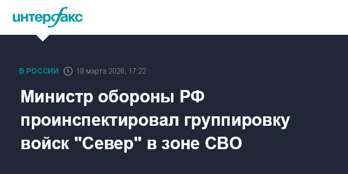 "17 марта 2026 года в ходе рабочей поездки в зону специальной военной операции глава российского военного ведомства проинспектировал подразделения группировки войск "Север" и на командном пункте заслушал доклады о ходе выполнения боевых задач", - говорится в сообщении министерства.