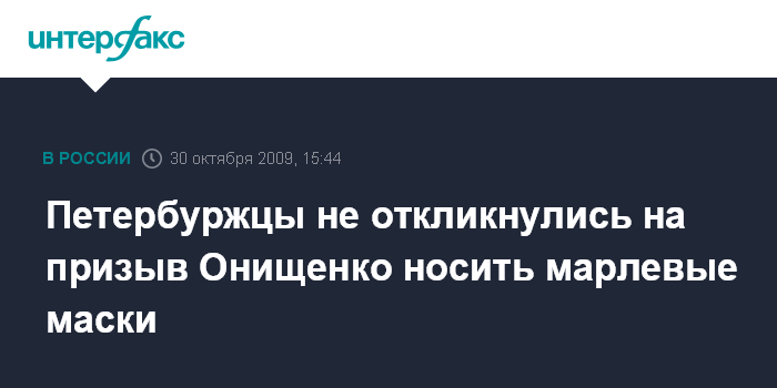 Петербуржцы не откликнулись на призыв Онищенко носить марлевые маски